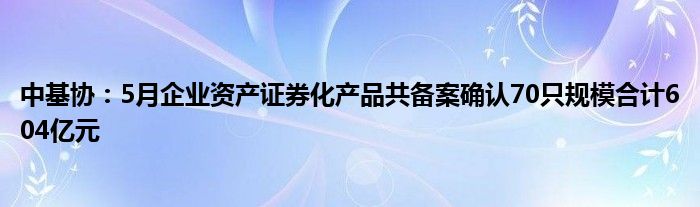 以上就是【中基协:5月企业资产证券化产品共备案确认70只规模合计604亿元】相关内容。