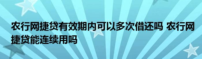 导读 大家好,小理来为大家解答以上的问题。农行网捷贷有效期内可以多次借还吗,农行网捷贷能连续用吗这个很多人还不知道,现在让我们一起来看看吧