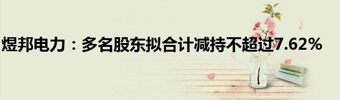 以上就是【煜邦电力:多名股东拟合计减持不超过7.62%】相关内容。