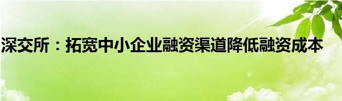 以上就是【深交所:拓宽中小企业融资渠道降低融资成本】相关内容。