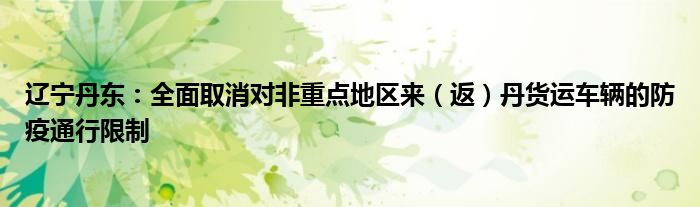 以上就是【辽宁丹东:全面取消对非重点地区来(返)丹货运车辆的防疫通行限制】相关内容。