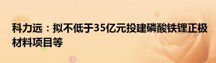 以上就是【科力远:拟不低于35亿元投建磷酸铁锂正极材料项目等】相关内容。