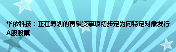 以上就是【华依科技:正在筹划的再融资事项初步定为向特定对象发行A股股票】相关内容。