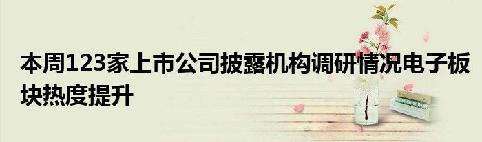 以上就是【本周123家上市公司披露机构调研情况电子板块热度提升】相关内容。