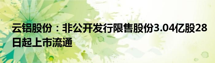 以上就是【云铝股份:非公开发行限售股份3.04亿股28日起上市流通】相关内容。