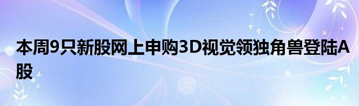 以上就是【本周9只新股网上申购3D视觉领独角兽登陆A股】相关内容。