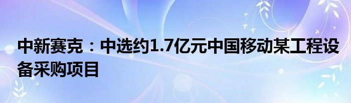 以上就是【中新赛克:中选约1.7亿元中国移动某工程设备采购项目】相关内容。
