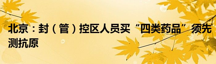 以上就是【北京:封(管)控区人员买“四类药品”须先测抗原】相关内容。