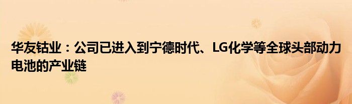 以上就是【华友钴业:公司已进入到宁德时代、LG化学等全球头部动力电池的产业链】相关内容。