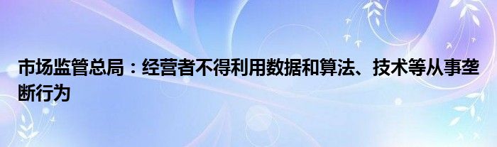 以上就是【市场监管总局:经营者不得利用数据和算法、技术等从事垄断行为】相关内容。