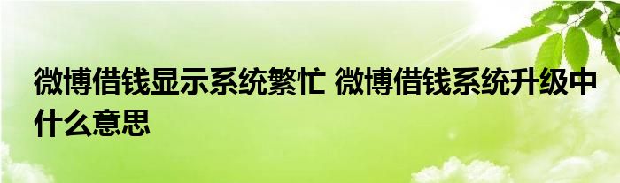 导读 大家好,小理来为大家解答以上的问题。微博借钱显示系统繁忙,微博借钱系统升级中什么意思这个很多人还不知道,现在让我们一起来看看吧!