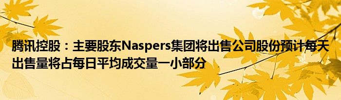 以上就是【腾讯控股:主要股东Naspers集团将出售公司股份预计每天出售量将占每日平均成交量一小部分】相关内容。