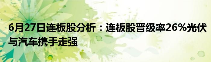 以上就是【6月27日连板股分析:连板股晋级率26%光伏与汽车携手走强】相关内容。