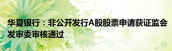 以上就是【华夏银行:非公开发行A股股票申请获证监会发审委审核通过】相关内容。