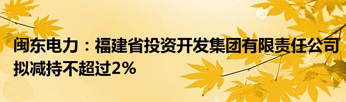 以上就是【闽东电力:福建省投资开发集团有限责任公司拟减持不超过2%】相关内容。