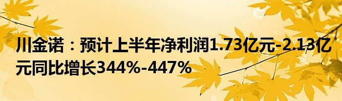 导读 6月27日电,川金诺公告,预计上半年净利润1 73亿元-2 13亿元,同比增长344%-447%。随着广西募投项目的投产,带动公司报告期营业收入和营业