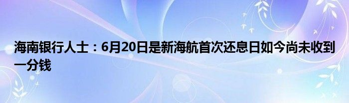 导读 6月27日电,近日,有不愿具名的海南银行人士透露,6月20日是新海航首次还息日,如今尚未收到一分钱。据了解,这笔利息是在海航破产重组的过