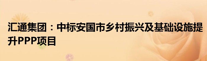 以上就是【汇通集团:中标安国市乡村振兴及基础设施提升PPP项目】相关内容。