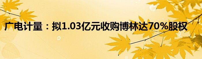 以上就是【广电计量:拟1.03亿元收购博林达70%股权】相关内容。