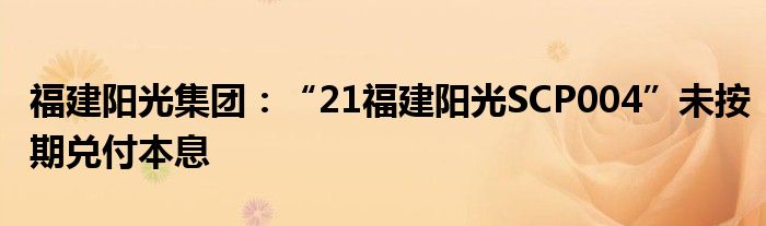 以上就是【福建阳光集团:“21福建阳光SCP004”未按期兑付本息】相关内容。