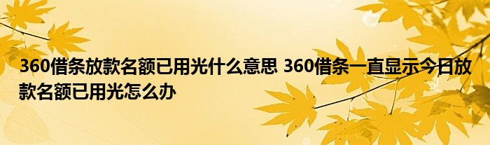 导读 大家好,小理来为大家解答以上的问题。360借条放款名额已用光什么意思,360借条一直显示今日放款名额已用光怎么办这个很多人还不知道,现在让