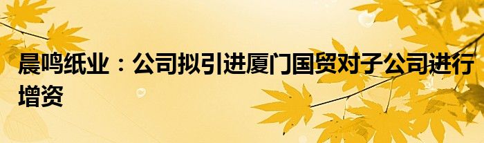 以上就是【晨鸣纸业:公司拟引进厦门国贸对子公司进行增资】相关内容。
