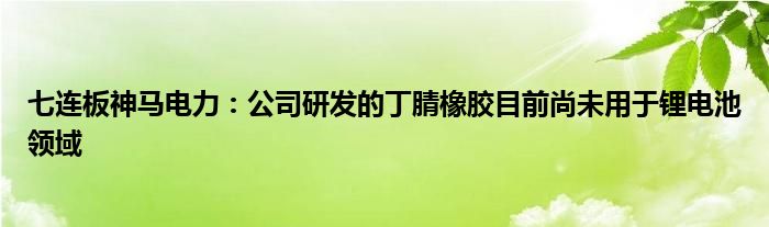 以上就是【七连板神马电力:公司研发的丁腈橡胶目前尚未用于锂电池领域】相关内容。