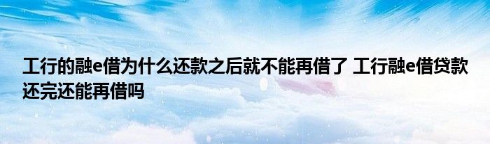 导读 大家好,小理来为大家解答以上的问题。工行的融e借为什么还款之后就不能再借了,工行融e借贷款还完还能再借吗这个很多人还不知道,现在让我们