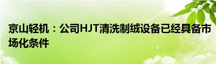 以上就是【京山轻机:公司HJT清洗制绒设备已经具备市场化条件】相关内容。