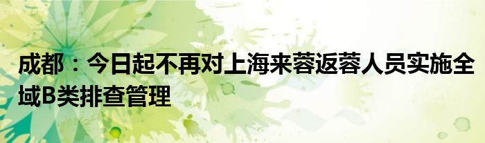 以上就是【成都:今日起不再对上海来蓉返蓉人员实施全域B类排查管理】相关内容。