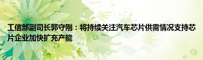 以上就是【工信部副司长郭守刚:将持续关注汽车芯片供需情况支持芯片企业加快扩充产能】相关内容。