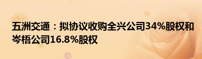 以上就是【五洲交通:拟协议收购全兴公司34%股权和岑梧公司16.8%股权】相关内容。