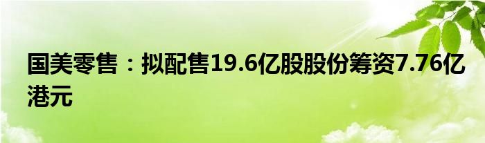 以上就是【国美零售:拟配售19.6亿股股份筹资7.76亿港元】相关内容。