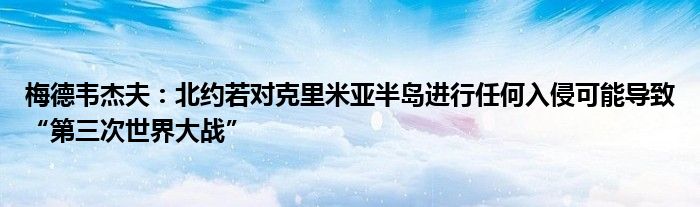 6月28日电,俄罗斯联邦安全会议副主席梅德韦杰夫表示,北约成员国若对克里米亚半岛进行任何入侵,都相当于对俄罗斯宣战,这可能导致“第三次世界大战”。