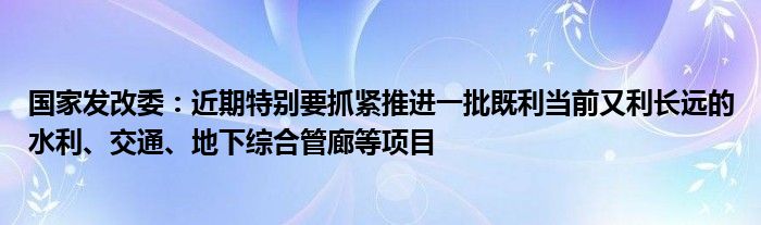 以上就是【国家发改委:近期特别要抓紧推进一批既利当前又利长远的水利、交通、地下综合管廊等项目】相关内容。