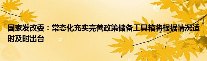 以上就是【国家发改委:常态化充实完善政策储备工具箱将根据情况适时及时出台】相关内容。