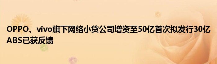 以上就是【OPPO、vivo旗下网络小贷公司增资至50亿首次拟发行30亿ABS已获反馈】相关内容。