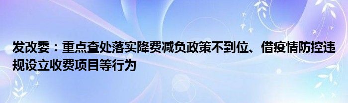 以上就是【发改委:重点查处落实降费减负政策不到位、借疫情防控违规设立收费项目等行为】相关内容。