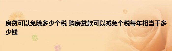 导读 大家好,小理来为大家解答以上的问题。房贷可以免除多少个税,购房贷款可以减免个税每年相当于多少钱这个很多人还不知道,现在让我们一起来看