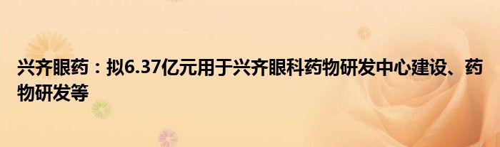 以上就是【兴齐眼药:拟6.37亿元用于兴齐眼科药物研发中心建设、药物研发等】相关内容。