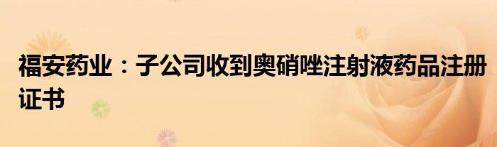 以上就是【福安药业:子公司收到奥硝唑注射液药品注册证书】相关内容。
