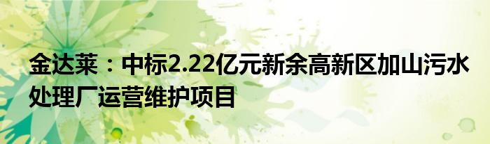 《科创板日报》28日讯,金达莱公告,中标新余高新区加山污水处理厂运营维护项目,中标金额2.22亿元。
