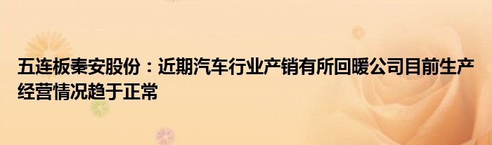 以上就是【五连板秦安股份:近期汽车行业产销有所回暖公司目前生产经营情况趋于正常】相关内容。
