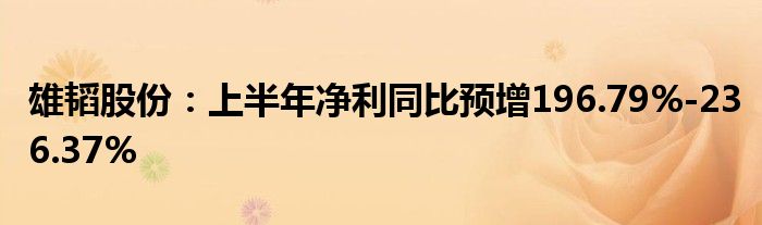 以上就是【雄韬股份:上半年净利同比预增196.79%-236.37%】相关内容。