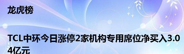 以上就是【龙虎榜|TCL中环今日涨停2家机构专用席位净买入3.04亿元】相关内容。