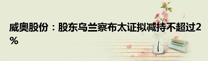 以上就是【威奥股份:股东乌兰察布太证拟减持不超过2%】相关内容。