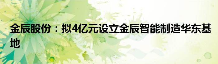以上就是【金辰股份:拟4亿元设立金辰智能制造华东基地】相关内容。