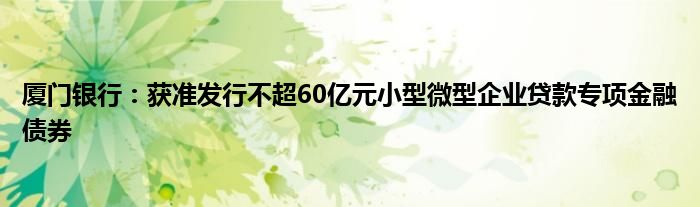 以上就是【厦门银行:获准发行不超60亿元小型微型企业贷款专项金融债券】相关内容。