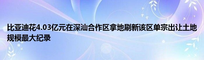 以上就是【比亚迪花4.03亿元在深汕合作区拿地刷新该区单宗出让土地规模最大纪录】相关内容。