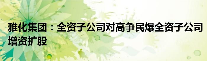 以上就是【雅化集团:全资子公司对高争民爆全资子公司增资扩股】相关内容。